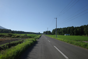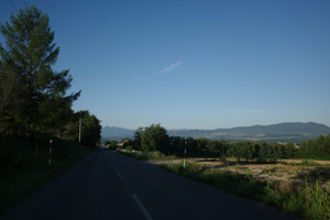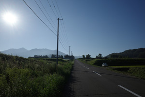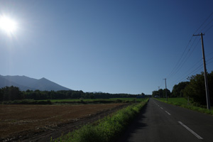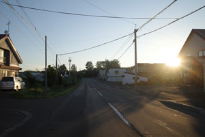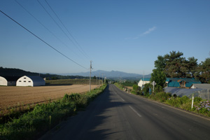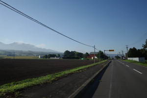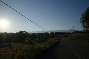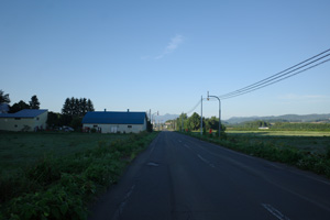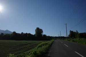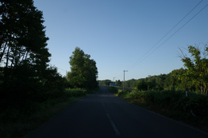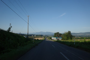 5:15、美馬牛発。辺りはキリッと涼しい。Tシャツの上に着たポロが心強い。毎年美瑛では、丘陵部で5時台の出発段階でももう少しぬるく、Tシャツ一丁で快適だった。これが美瑛と美馬牛の違いかもしれない。