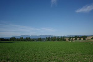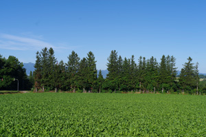 ここぞとばかりに持ってきたレンズを取っ替え引っ替え、写真を撮っておく。しかし、美馬牛や上富良野であれだけ空が晴れていたのに、十勝岳山裾の本幸まで来ると空に雲が出始めていて、写真を撮っている間に日なたが薄曇りに替わりつつあった。まだ7時台と言わず、次の晴れを待たずに先へ進むべきかもしれない。