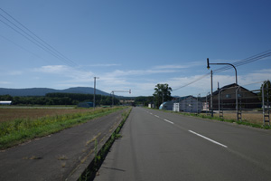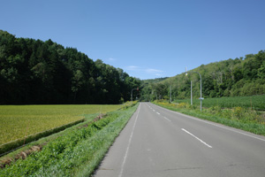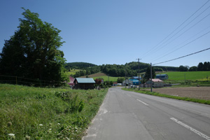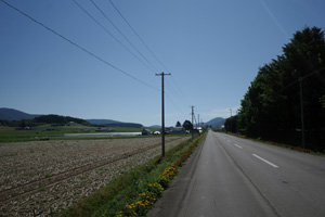この辺り、本当は緩やかに起伏する丘に畑が拡がり、立木が風景に彩りを添えるとても整った風景が続くのだが、一方でいつ来ても暑い印象しか無い。