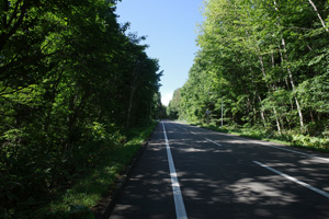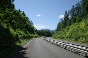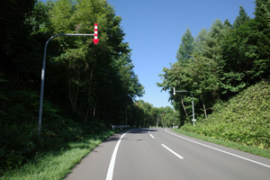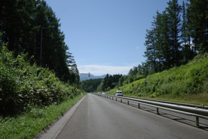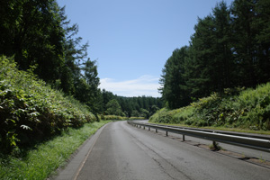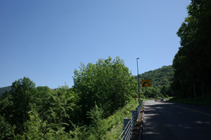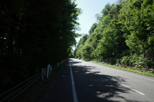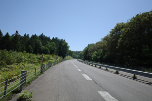 しかし2桁国道のこの道でも、登り区間の後半に木陰が増えてくれたのは意外な助けだった。焼けるように熱い日なたから木陰に移ると、我ながら面白いほど一気に頭がはっきりする。