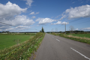 12:55、計根別発。町北側の谷を越えた後は、平べったい台地を養老牛までほぼ一直線。