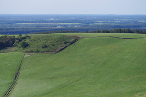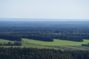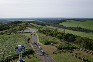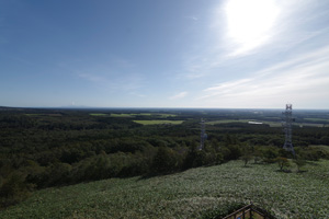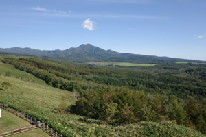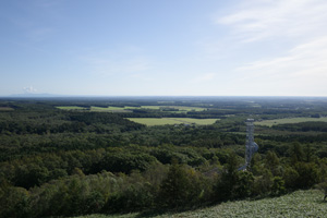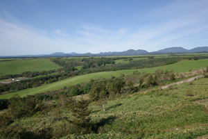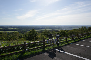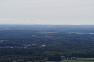 未だ7時台だとか昨日の夕方と違って陽差しが強いとか、今朝も遠景が冴え渡っているとか、もうどうでもいい。きりっと涼しい空気の中で、平べったく拡がる根釧台地と、上半分に拡がる空気、空。彼方へ消えているそれらは、抽象的な距離じゃなくて、実体感とともに物質として自分の前にある。そんなこと地球上のどこでも同じなのだが、触感と視覚が一致しつつどこまでも続いているという実感が、開陽台ならでの素晴らしさだ。