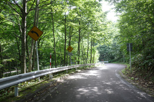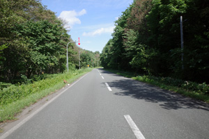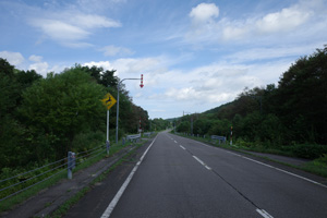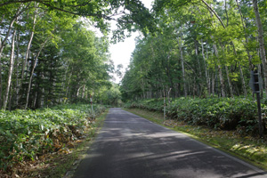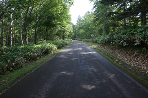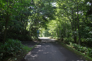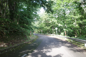 斜面を巻いていた道が谷底で折り返してからは、更に一目散で森の中を下ってゆく。もうきりもみ状態だ。森の中ではあっても、ところどころで段階的に上がってゆく気温に、津別の暑さが思われる。