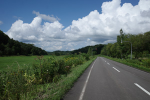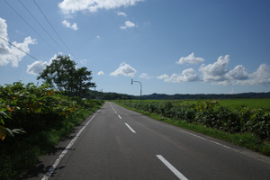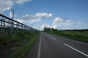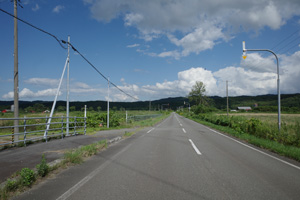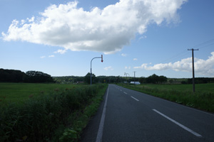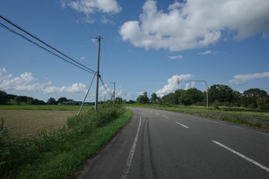 しかし、日本海かサロベツ原野の為せる技か、風が強くなり始めていた。今日の風は横風で、概ね北上している道のちょっとした向き次第で、少しはマシになったり向かい風気味に変わったりした。