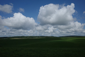 丘陵に牧草地が広がるのはどの道も同じ、この辺りの常だ。でもこちらの道にしたお陰で、久しぶりの風景を思い出しながら退屈せず、暑いながらも何とか沼川に辿りつくことができた。段々涼しくなってきているかもしれない。ほんの僅かではあるが。