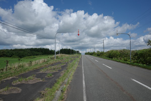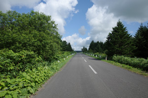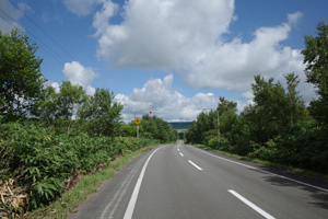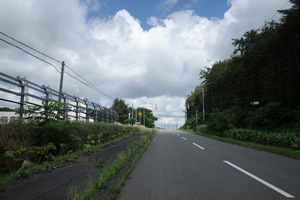 道道120に合流すると、辺りが再び日なたに戻った。相変わらず日なたは暑かったものの、牧草地まっただ中の育成牧場よりは道端に木陰が増え、明らかに頭がはっきりし始めた。弱めの向かい風も、今日は暑さを少し和らげてくれている。