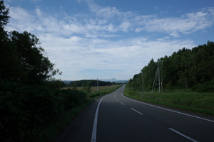 町外れの森から常盤の牧草地を掠め、頓別川の谷へ下ってゆく。